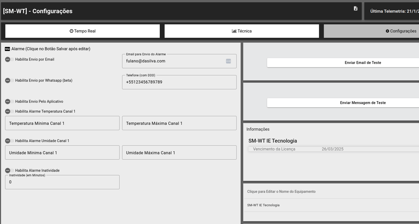 Configuração flexível: Envio de dados configurável a cada 1 hora.