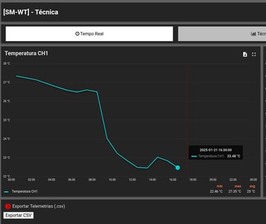 Monitoramento em tempo real: Gráficos detalhados de temperatura e umidade diretamente pelo navegador.