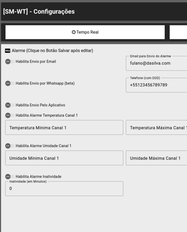 Alarmes configuráveis para alertas de temperatura e umidade fora dos limites.